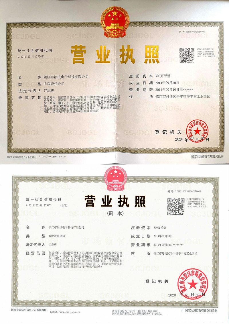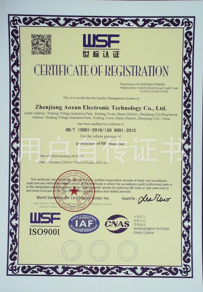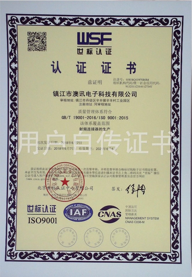 鎮江市澳訊電子科技有限公司,占地面積5000平方米,現有員工近百名,各類技術人員占15%。我公司專業從事射頻同軸連接器的設計、研制、開發(fā)、生產、銷售。
